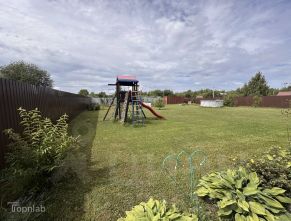 Участок ровный, прямоугольной формы. На участке имеется детская игровая площадка с горкой и качелями, теплица, плодовые деревья и кустарники, помещение для хоз.инвентаря, фундамент под баню. Ведется видеонаблюдение.