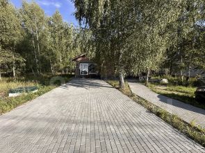 Ухоженный участок широкой и правильной формы, без уклонов. Придомовая территория выполнена из брусчатки на 6 парковочных мест.