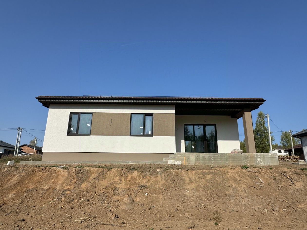 Фундамент ленточный с буронабивными сваями плюс монолитная плита. Коттедж из пеноблока толщиной 300 мм+ утеплитель, отделка короед. Кровля - металлочерепица. Канализация - септик 3 кольца по 1,5 м, разводка электричества по всему дому, теплые водяные полы включая с/узел, работы под чистовую отделку, вода-центральная, газ.