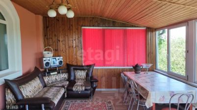 Знакомство с домом начинается начинается с веранды, которая застеклена и утеплена, что позволяет проводить на ней время, отдыхая и любуясь видом на растения с участка.