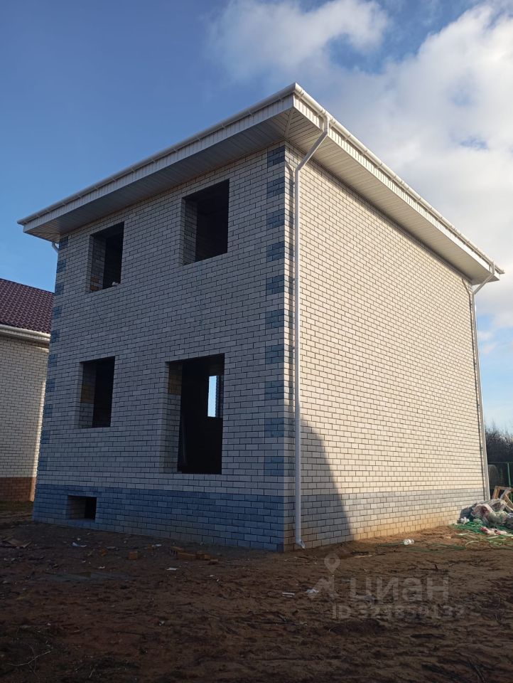 Выполнен полностью включая меж. комнатные перегородки из Борского силикатного кирпича, утепление мин. вата 100, облицовка кирпич. Перекрытие 1-го и 2-го этажей железобетонные.