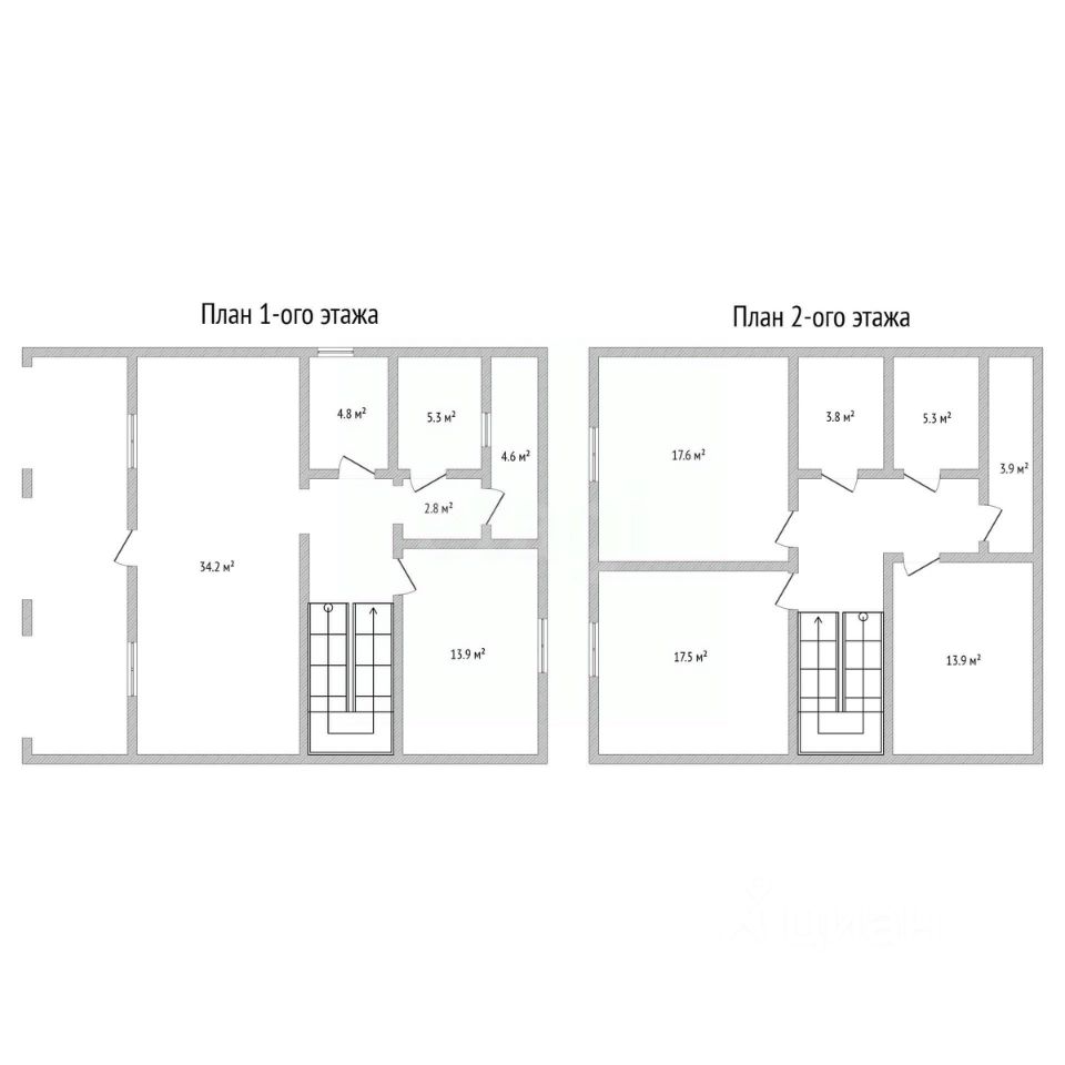 • Высота потолков 3 метра на обоих этажах.