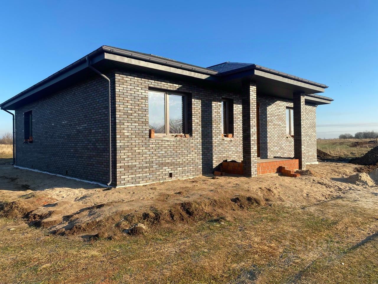 * Материалы: Керамический кирпич с облицовкой декоративным кирпичом Браер,, Баварская кладка LIMITED? общая толщина стен 630 мм, кровля из гибкой черепицы Технониколь, окна ПВХ.