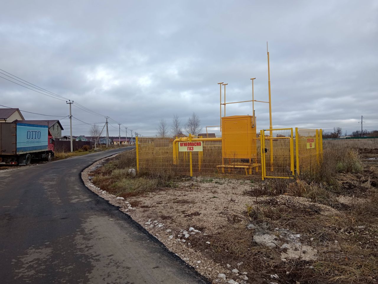 Коммуникации: газ, электричество подведены к массиву, вода из скважины, канализация - септик, дорога до коттеджного посёлка асфальтная, внутри поселка щебневая.