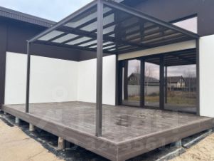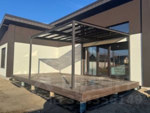 Терраса: Террасная доска ДПК + навес из металлокаркаса и монолитного поликарбоната.