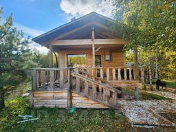 Благоустроенный участок с баней из бруса и вторым таким же домом без отделки.
