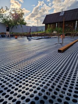 Фундамент - железобетонная монолитная плита на сваях 300 мм/3м.