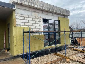 Фасад - каменная вата 100 мм плюс штукатурка.