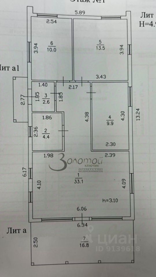 Общая площадь 92,6 кв м., жилая - 33 кв м.