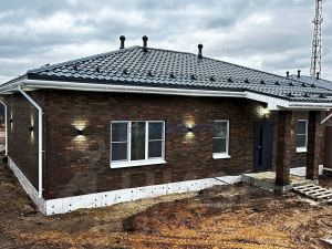 Дом построен из блока и облачен в элегантную и вечную облицовку из кирпича. Это капитально, тепло и не требует ухода.