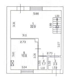 - Первый этаж - свободная планировка, которая представляет собой просторную прихожую, гостиную 23 кв.м. с выходом на задний двор и изолированную кухню 11 кв.м.