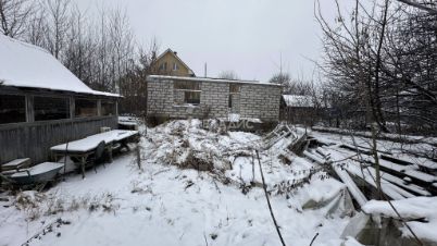 Залит фундамент 11*10 с крыльцом и возведены стены первого этажа, материал - бетон, газосиликат.