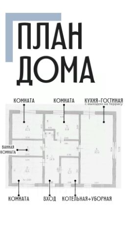 В доме 3 просторные комнаты, кухня-гостиная с выходом на терассу, котельная, санузел.