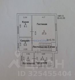 на 1-этаже высота потолка 2.70 м, где лестница высота потока составляет 6 м ,