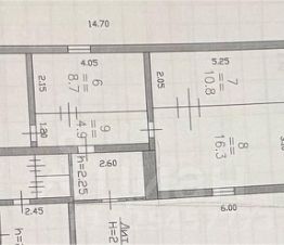 Две изолированные комнаты площадью 16,3 и 14,7 квадратных метров, кухня 8,7 квадратных метров.