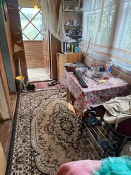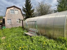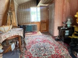 Дом двухэтажный, деревянный. На 1 этаже прихожая, кухня и спальная комната, на 2 этаже одна большая комната. Крыша из профнастила. Земельный участок 4,3 сотки, межевание есть. На участке летний душ, туалет, хозблок, теплица из поликарбоната, новая баня. Баня имеет 3 отделения (парилка, помывочная, комната отдыха).