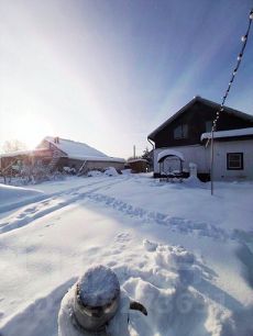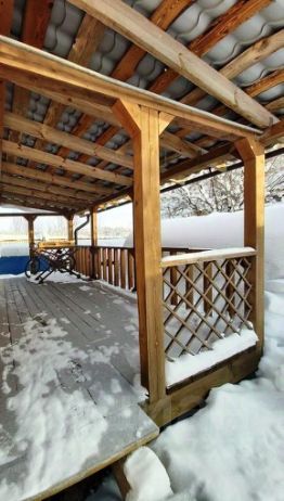 Земельный участок правильной формы с зонами отдыха, с растениями и плодовыми деревьями. Имеются постройки - вольер, два сарая и очень просторная бревенчатая 6 на 6 баня с камином и терассой. Можно использовать её и для проживания.