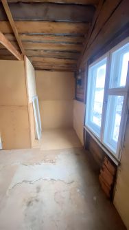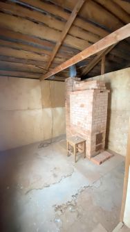 Дом двухэтажный, первый этаж кирпичный, второй деревянный. Есть электричество, печь.
