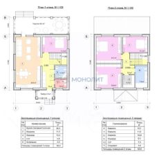 2 этаж: холл (9,3 м2), спальная комната 1 (11,3 м2), спальная комната 2 (16,9 м2), спальная комната 3 (16,9 м2), санузел (7,9 м2), гардеробная (4,4 м2).