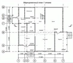 1 этаж: кухня гостиная + котельная + санузел +спальня + терраса. 2 этаж:4 комнаты + санузел.