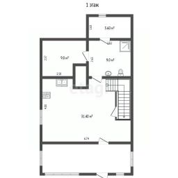 2 этаж - большой холл 45 кв.м. , 3 комнаты, кухонная зона , а также санузел с душевой.