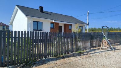 Одноэтажный дом 105 кв.м. с терасой в д.Кожевенное (рядом с КП Владыкино) на участке 7 соток.Планировка дома - 3 спальни, большая кухня-гостиная, котельная, собственная терраса. Дом огорожен забором евроштакетник, смонтированы откатные ворота, калитка, отмостка, бетонная дорожка. В дом заведены коммуникации - электричество, централизованная вода, канализация-септик. Подключение по догазификации или коммерческое подключение.Материал стен - керамический блок утепление 100 мм, зимой. Кровля - мягкая черепица, теплый пол. Ремонт под ключ с мебелью и кухней. Посмотреть готовый дом с ремонтов можно в готовом шоу-руме. `