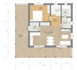 Максимально продуманная планировка учитывает все потребности для жизни любой семьи. Санузел на каждом этаже для приватности хозяев, три спальни на втором этаже и одна гостевая спальня на первом этаже для гостей или возрастных родителей, огромная терраса на обе стороны дома и балкон на втором этаже с выходом их спален.