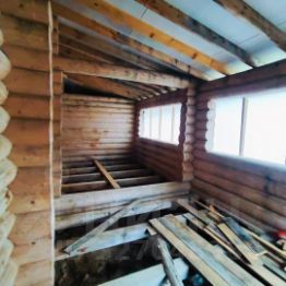 Дом старого фонда + дом из качественного бруса - это плотная, смолистая древесина, известная своей прочностью и низкой теплопроводностью.Но главная гордость дома - это усиленный свайно - ленточный фундамент. Ленточная часть равномерно распределяет вес дома по всему периметру. 47 железобетонных свай уходят глубоко в землю, работая как мощные якоря. Такая конструкция идеальна для нашего климата: она защищает дом от сил морозного пучения и гарантирует, что его не "поведет" даже на сложном рельефе. Крыша дома перекрыта профнастилом, крыша бани - металлочерепица, крыша беседки - мягкая кровля.