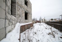 Дом построен в 2023 году из блочного материала, перекрытия выполнены из железобетонных плит, высота потолков — 3,5 м. На участке есть гараж, подведены электричество и газ, обеспечен круглогодичный доступ благодаря асфальтированному подъезду. Общая площадь участка — 10 соток.