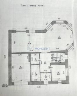 - построен из красного кирпича, монолитный фундамент, бетонные перекрытия, крыша-мягкая черепица;