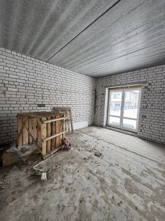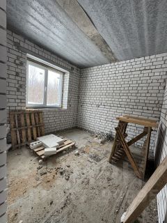 Всё уже смонтировано: Установлен газовый котел Navien, сделаны тёплые полы на 1 этаже и радиаторы на обоих этажах. Стены выровнены под обои, подведено электричество, установлены окна с откосами и подоконники.