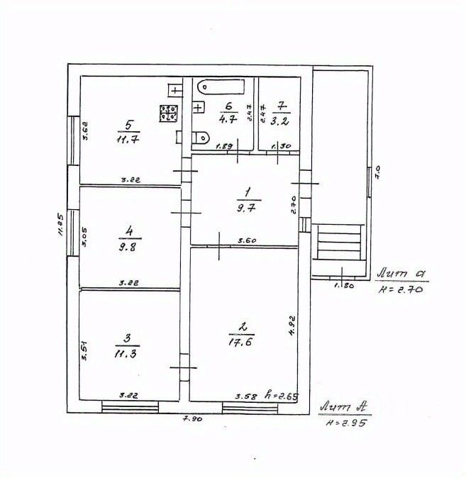 - комнаты 17.6, 11.3 и 9.8 кв. м.