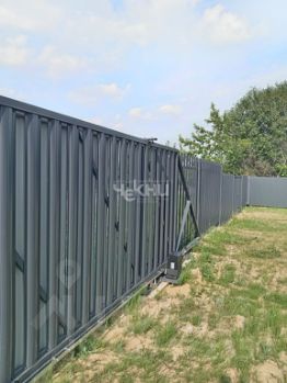 Земельный участок 12 соток, ЛПХ, по периметру огорожен забором. Двое ворот, одни откатные с пульта, вторые распашные.