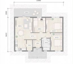 Планировка: просторная кухня-гостиная с выходом на террасу из террасной доски, три спальни, совмещенный санузел.