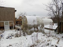 Дом построен на винтовых сваях 108 мм, на них можно смело построить дом до 2х этажей. Карас дома из профтрубы 80 на 80. Лаги пола и стропила из обработанной доски 150 на 50. Установлена входная дверь и окна. Частично обшили сайдингом и осп плитой. Полы покрыты ламинированной фанерой. Есть своя скважина. Если дополнительно утеплить можно жить круглый год. На участке плодородный грунт, теплицы и плодовые деревья.