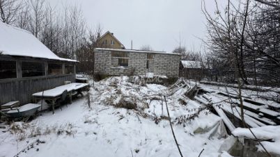 Залит фундамент 11*10 с крыльцом и возведены стены первого этажа, материал - бетон, газосиликат.