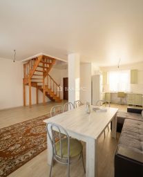 Внутри — свежий косметический ремонт. Всё чисто, ровно, аккуратно. Завозите мебель — и готово. Идеально, если хотите свой дизайн, но не хотите отдирать старые обои. Новому собственнику остается кухонный гарнитур, диван в гостиной (3 метра), в спальне большая кровать 2х2, диван.