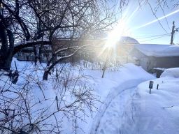 Большой огород с плодовыми деревьями и кустарниками: черная, красная смородина, крыжовник, малина, слива, вишня, виноград, яблони, груша. Для удобства полива по всей территории проведена вода.