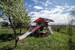 На участке ест теплица, плодовые и ягодные посадки, размещён детский игровой комплекс. Фундамент- блоки. Крыша - металлочерепица. Просторный подвал. Свежий ремонт.