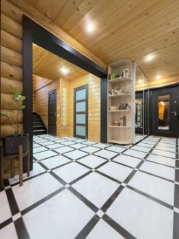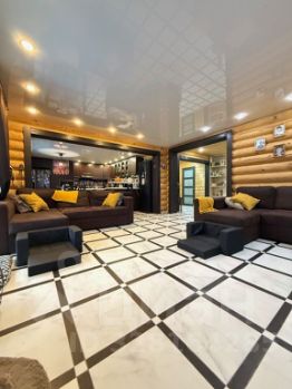 по всему первому этажу уложено напольное покрытие-керамогранит, под которым 9 контуров теплого водяного Пола