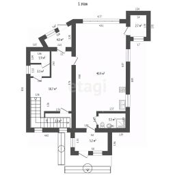 На первом этаже 81,9 м2 — находится гараж, котельная, подсобное помещение, скважина, душевая, санузел, два тамбура.