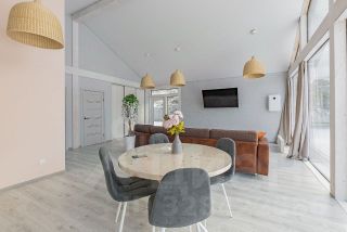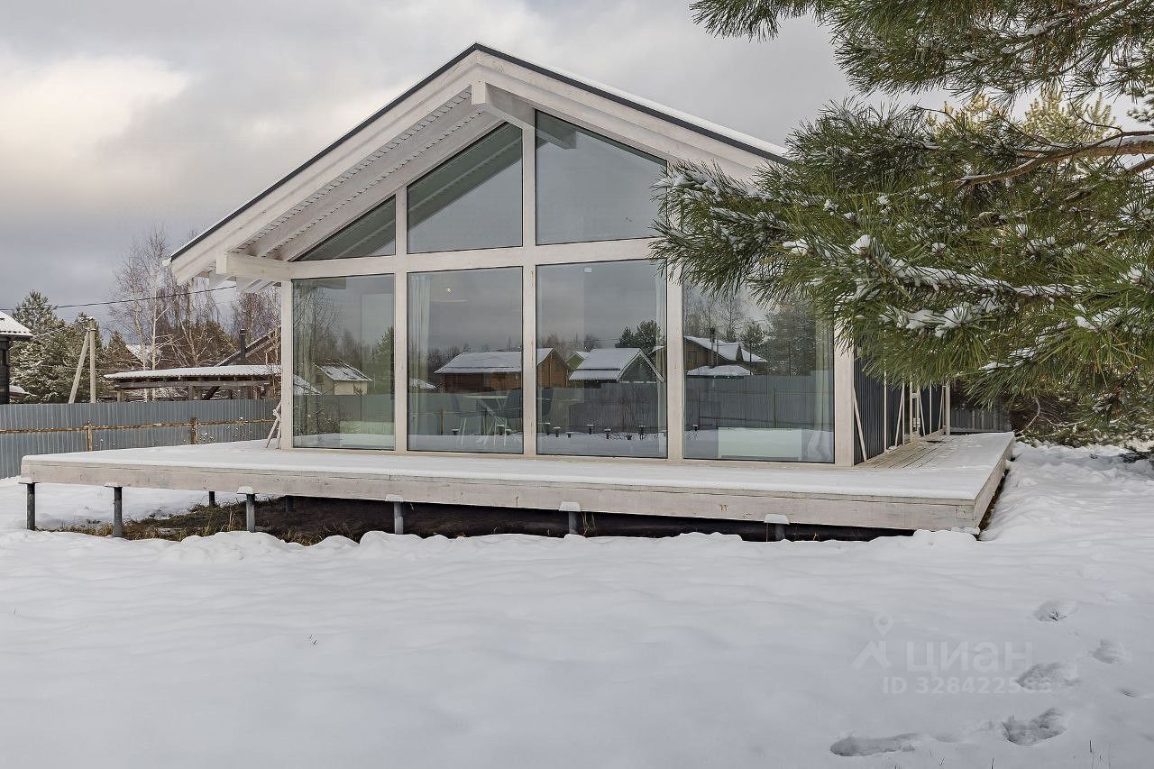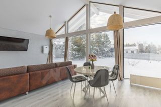 Дом построен из клеёного бруса по современной технологии фахверх, тщательно утеплён для постоянного проживания в любое время года. Внутри вас ждёт пространство площадью 85м2, а снаружи — просторная терраса 60м2: идеальное место для отдыха летом и созерцания зимних пейзажей.