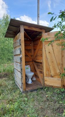 Туалет уличный с унитазом и технологией смыва.