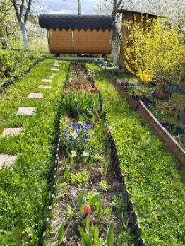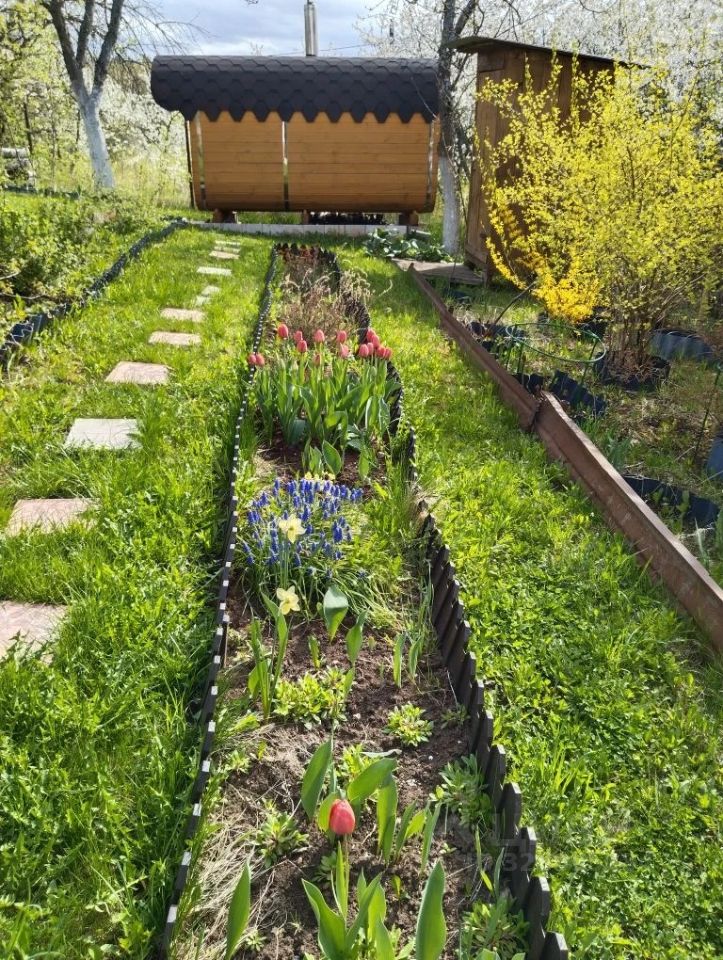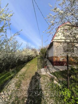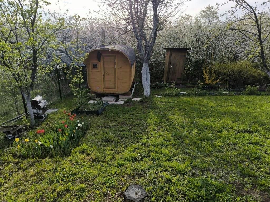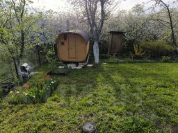 Участок ухожен, много цветов. Яблони летние и осенние сорта, груша, вишня, смородина, крыжовник, малина, виктория. Большая бочка под воду. Участок огорожен металлической сеткой.