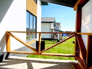 На первом этаже расположена большая кухня-гостиная с выходом на веранду, где можно наслаждаться свежим воздухом и видами на природу.
