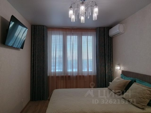 В спальне достойная высокая двуспальная кровать с качественным ортопедическим матрацем, напротив большой жк смарт-тв.