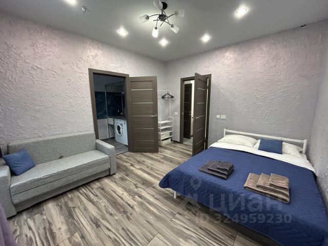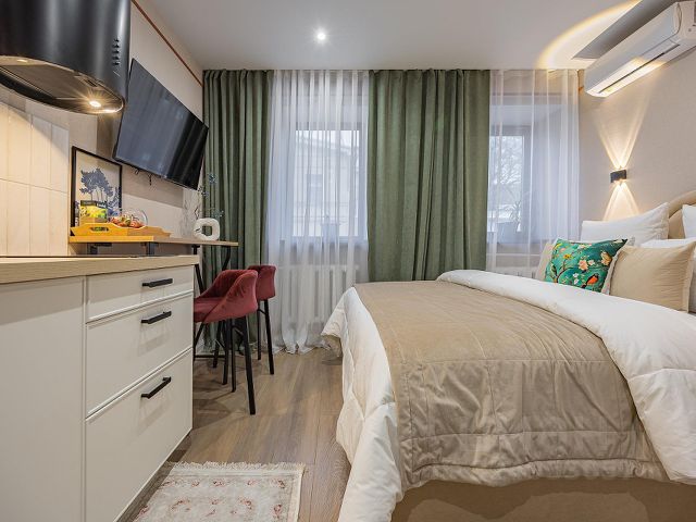 Уютная студия площадью 25 м² на 3 этаже. Идеально подходит для семьи из 3 человек, командированных или туристов, приехавших небольшой компанией, желающих насладиться комфортом. Спальные места: двуспальная кровать (160200 см, ортопедический матрас), односпальный диван (120200 см). Спальные комплекты: На каждую кровать и диван идет следующий комплект: 2 подушки; 2 наволочки; двуспальное одеяло; пододеяльник; простынь. Удобства: кондиционер, обеспечит вас комфортом в летний период; общественная парковка около дома; скоростной Wi-Fi для работы и развлечений; полностью оборудованная кухня (холодильник, плита, СВЧ-печь, чайник, набор посуды); стиральная машина; просторная ванная комната с душевой кабиной, мягкими полотенцами и феном; гигиенические наборы: мыло, шампунь, гель для душа, ватные палочки, ватные диски, прокладки, зубные щетки; комплимент для гостей: чай, кофе, соль, сахар, конфеты и подсолнечное масло; постельное бельё из натуральных тканей.