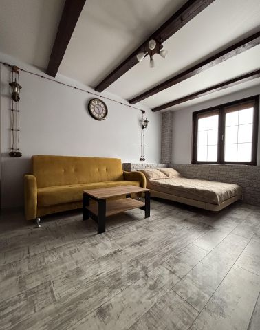 Спальня c двуспальной кроватью + кухонная зона c диваном делают возможным размещение до 4х гостей.