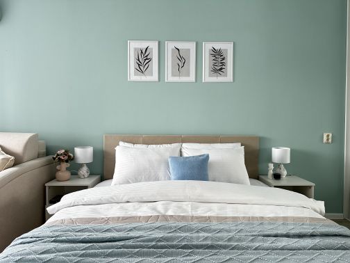 Рaзмещeниe до 9 гостей. Двуспальный диван, 3 двуспальные кровати, еврораскладушка.
