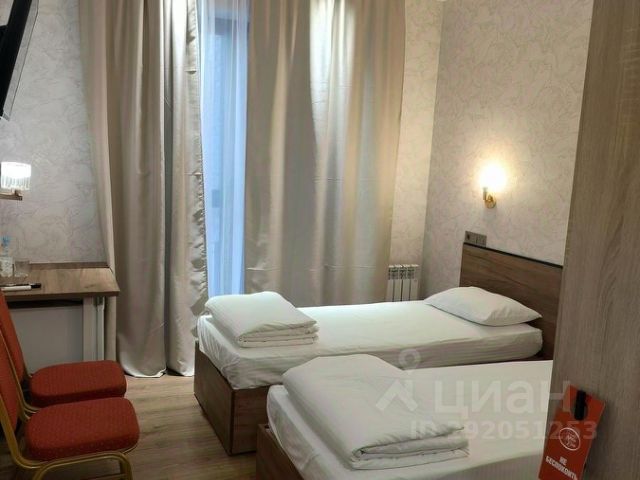 Пространство включает телевизор, кресла, шкаф, комод, кровать, чайник, фен, холодильник, тапочки, халаты.